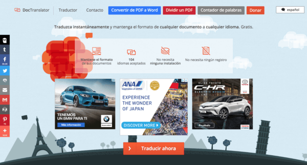 Además, DocTranslator utiliza tecnología Google Translate para trabajar traducciones en más de 100 idiomas. Sin duda, uno de los traductores más recomendables.