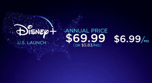 Los precios de Disney Plus, como pasa con la fecha de lanzamiento, sólo se saben en Estados Unidos. Así, los precios de Disney Plus en USA serán dos: