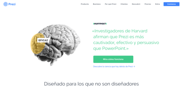 Con Prezi podrás crear presentaciones de lo más hipnóticas. Eso sí, como mucho de 100 MB, por lo que no te darán para mucho, al menos en la versión gratuita.
