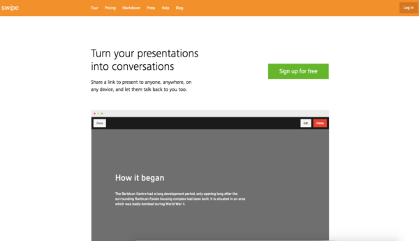 Convierte tus presentaciones en historias. Swipe no sólo es un programa para hacer presentaciones, es que tiene eslogan pegadizo y con fuerza. Ahora, lo mejor es su contenido. Swipe no sólo te permite crear presentaciones, sino también encuestas y sondeos.