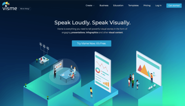 Visme es uno de los programas para hacer presentaciones más fáciles de usar. Visme te permite crear presentaciones, pero también infografías o gráficas. Todo de forma sencilla e intuitiva para que no te lleve demasiado tiempo.